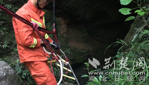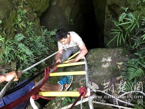 消防員搭建軟梯準(zhǔn)備入洞營救?!》侗蟊髷z