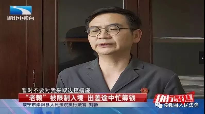 崇陽縣法院執(zhí)行法官劉勃:“法院現(xiàn)在對失信被執(zhí)行人有個(gè)措施,就是限制出入境,我就跟他講,我說你回不來了?!?/p>