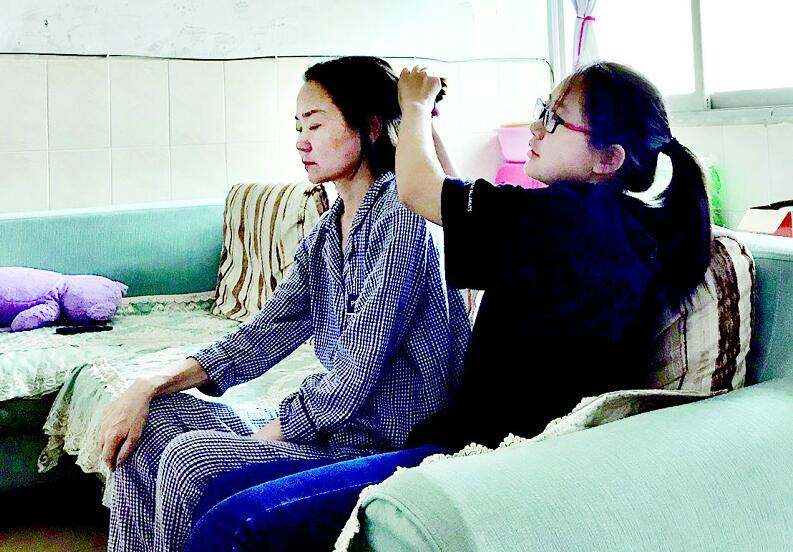 王渝玥原計(jì)劃跟同學(xué)開暑期培訓(xùn)班,這樣可給媽媽掙點(diǎn)藥費(fèi),但沒想到媽媽病情惡化,她只好放棄開班的想法全身心陪護(hù)母親。從沒干過家務(wù)的她,拿起了拖把拖地,學(xué)會(huì)了簡(jiǎn)單做飯,每天幫母親洗澡,扶著母親上下床、上衛(wèi)生間。“上大學(xué)的日子越來越近,我要好好陪媽媽,她已沒法陪我一起去北京了……”王渝玥說到這里淚如雨下。