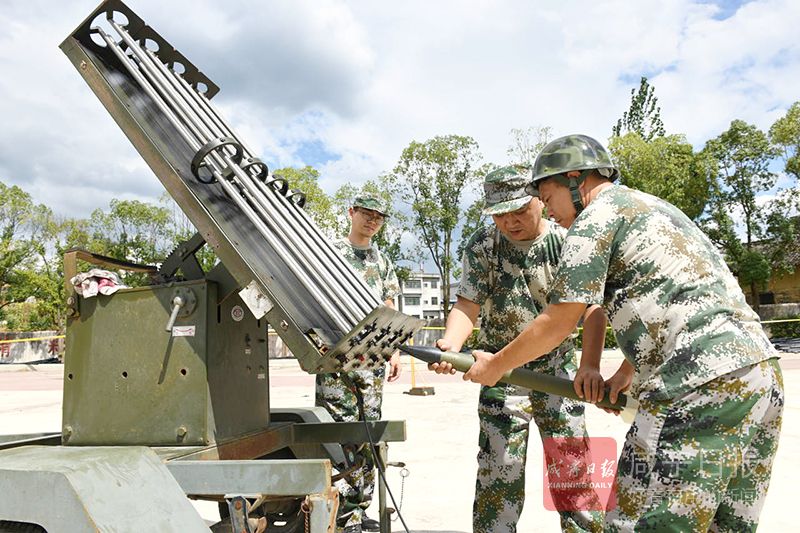 26日,在崇陽縣港口鄉(xiāng)中學(xué),該縣氣象局工作人員正在此架設(shè)火箭炮,守候?qū)α髟茖?,抓住有利時(shí)機(jī)實(shí)施人工增雨抗旱作業(yè)。