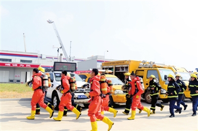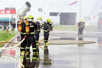 由200余人組成的民兵防火救災(zāi)應(yīng)急救援營,迅即分成偵查組、救生組、滅火組三個救援小組,配備應(yīng)急搶修車、舉高噴射車、水罐泡沫消防車、灑水車、發(fā)電車等20余輛救援車輛,進(jìn)入事發(fā)現(xiàn)場。