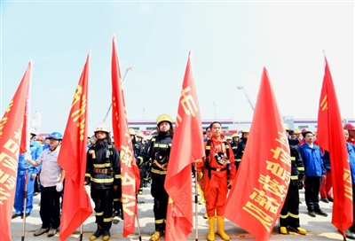這是9月19日上午,我市今年舉行的又一場“迎大慶、保軍運(yùn)”應(yīng)急救援綜合拉動演練。