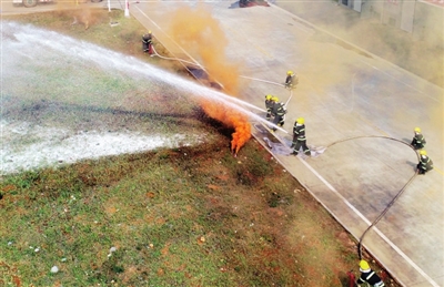 演練中,從發(fā)現(xiàn)火災(zāi)到火場救援,再到轉(zhuǎn)移被困人員,演練隊(duì)員沉著冷靜、技術(shù)過硬,整個過程分工明確、配合有力。經(jīng)過1個小時的“激戰(zhàn)”,各參演隊(duì)伍圓滿完成各項(xiàng)任務(wù)。