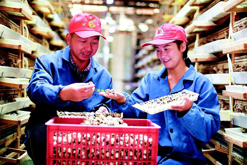 10月29日,在通城縣沙堆鎮(zhèn)石沖村,貧困戶游明夫妻在撿鵪鶉蛋。在鎮(zhèn)村干部的幫扶下,游明自學(xué)養(yǎng)殖鵪鶉技術(shù),利用空閑廠房辦起了養(yǎng)殖場,并提供鵪鶉種苗,傳授養(yǎng)殖技術(shù),帶動周邊村6戶貧困戶一起脫貧致富,助力鄉(xiāng)村振興。(視界網(wǎng) 劉建平 攝)