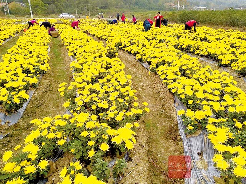 為了發(fā)展村級集體經(jīng)濟(jì)和帶動貧困戶就業(yè),咸安區(qū)桂花鎮(zhèn)黨委政府轉(zhuǎn)變思路,在萬壽橋村十一、十二組及時調(diào)整種植模式,試種40畝菊花。目前,正值菊花盛開的時節(jié),村民們正在忙著采摘菊花。