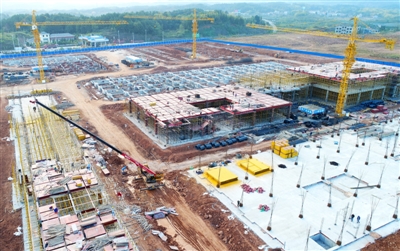 11日,通山縣南林橋雙創(chuàng)(扶貧)產(chǎn)業(yè)園一期建設工地一片繁忙。