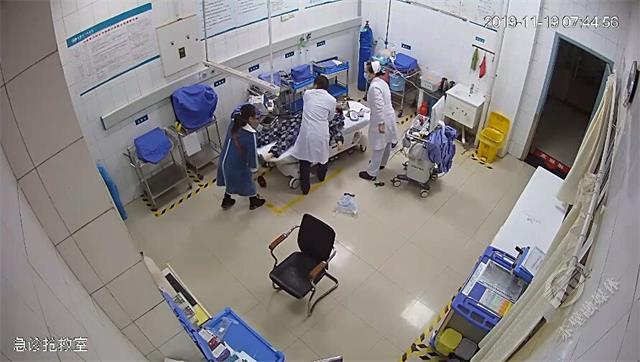 當(dāng)日早晨7點(diǎn)30分許,一名急性胸痛患者被送入赤壁市人民醫(yī)院急診科,可剛進(jìn)搶救室不久,患者發(fā)生室顫,意識(shí)喪失,面色發(fā)紺,心電活動(dòng)逐漸消失,心電監(jiān)控儀上顯示血壓、心跳幾近直線。接診的醫(yī)生吳濤、護(hù)士徐萌當(dāng)即對(duì)患者進(jìn)行胸外和電擊除顫,并持續(xù)胸外按壓,直至微弱的心跳重新回到心電監(jiān)控儀上,轉(zhuǎn)成竇性心律,恢復(fù)自主呼吸。