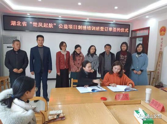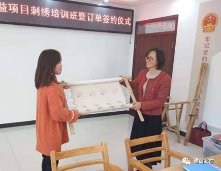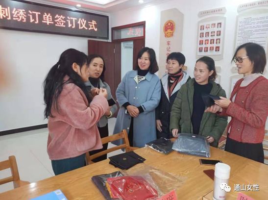 2019年12月11日,通山“繡娘”獲得首批訂單,踏上將“指尖技能”轉(zhuǎn)化為“指尖財(cái)富”的第一步,也是通山縣“巧山姑”手工技能培訓(xùn)項(xiàng)目初步成效的體現(xiàn)。訂單設(shè)定老鼠生肖肚兜、高山流水書簽、小夜燈繡片等12種樣式,共含繡刺任務(wù)500余件。繡娘收到訂單消息后,各個(gè)歡欣鼓舞,喜笑顏開,不少繡娘們互相鼓勁打氣,摩拳擦掌準(zhǔn)備大干一場?;貞?yīng)繡娘們的殷切期盼,訂單簽訂儀式于當(dāng)天下午在通山縣南林橋鎮(zhèn)石門村舉行,咸寧市婦聯(lián)主席陳海蓮、副主席張繼萍、通山縣副縣長張曉丹參加活動,縣婦聯(lián)主席張丹主持。