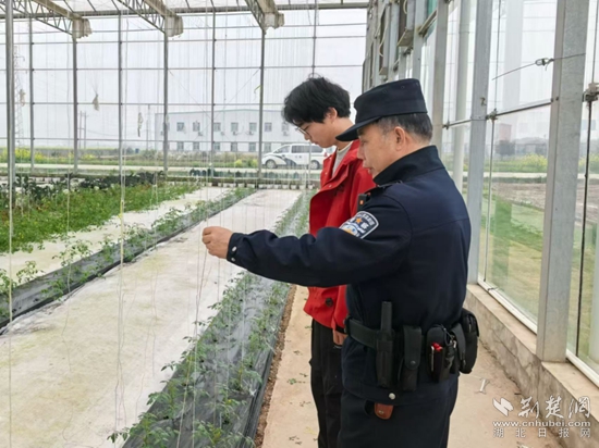 在湖北嘉魚蔬菜科技園,農(nóng)業(yè)數(shù)字化服務(wù)站監(jiān)測屏實(shí)時(shí)更新著氣象信息、病蟲害防范等農(nóng)事數(shù)據(jù);空中植保無人機(jī)有序開展施肥噴藥作業(yè);田埂上,潘家灣派出所民輔警常態(tài)化開展動(dòng)態(tài)巡邏,及時(shí)排查各類安全隱患、快速調(diào)解涉農(nóng)矛盾糾紛,全力維護(hù)田間生產(chǎn)秩序。