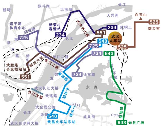 據(jù)悉,春運期間,將根據(jù)客流變化情況,調(diào)整增加武漢站上述7條公交線路運力,還將開通武漢站至漢口站的大站快車線路。走向為:武漢站經(jīng)白云路、團結大道、建設十路、友誼大道、長江二橋、黃浦大街、發(fā)展大道、常青路至漢口站。