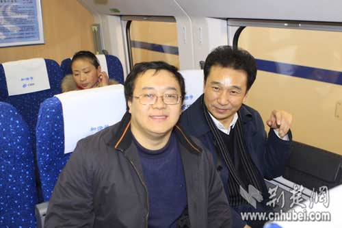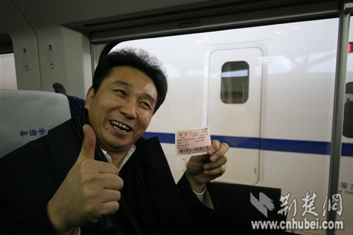 荊楚網(wǎng)消息(記者姚啟慧)26日上午9時(shí),武廣高鐵發(fā)出首趟列車,不少武漢游客專門(mén)前來(lái)體驗(yàn),在3號(hào)車廂,記者遇到了武漢著名“笑星”田克兢。他坦言,乘高鐵體驗(yàn)既驚又喜,今后要把這次經(jīng)歷融入自己作品中。