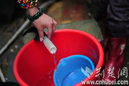 “直到去年,在村里人的幫助下,我們從山上挖了口小井,把水引下來!焙娌ㄕf。