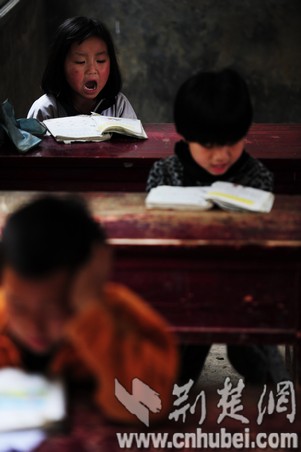 “白日依山盡,黃河入海流……”盡管普通話發(fā)音還不標準,孩子們卻異常認真,一字一句地大聲朗讀。