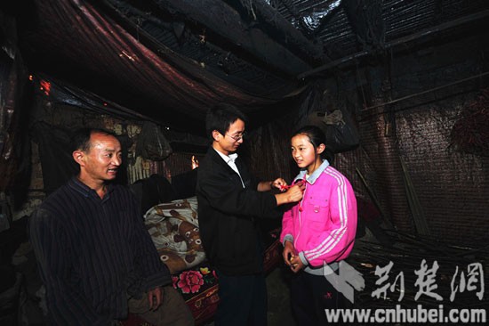 走進半山腰家徒四壁的楊杰家,羅歡輕輕拉過小楊杰,給她系上一根紅繩。
